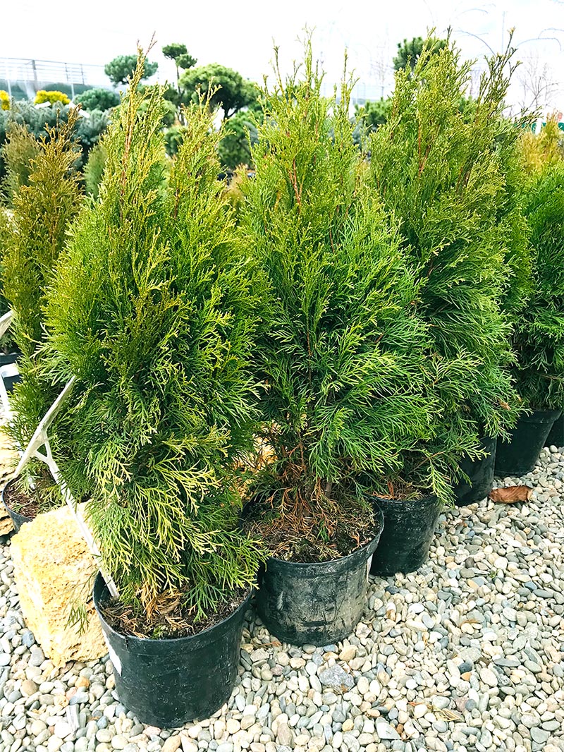 Туя 'Смарагд' – это вечнозелёное дерево конической формы, которое является одним из самых популярных видов для ландшафтного дизайна благодаря своей устойчивости к морозам и засухам. Высота предлагаемых саженцев составляет от 60 до 100 см, что делает их идеальным выбором для создания живой изгороди или как акцентного растения в саду.